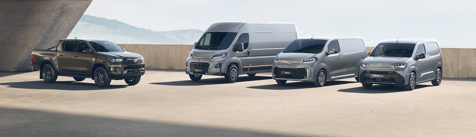 Toyotan hyötyautomallisto tarjoaa ratkaisuja monenlaisiin kuljetustarpeisiin useissa eri kokoluokissa. Vaihtoehtoja löytyy kompakteimmista malleista, kuten näppärästä Proace City -pakettiautosta, aina suurempiin vaihtoehtoihin, kuten tonniluokan Proaceen ja vieläkin tilavampaan Proace Maxiin, joka erottuu luokkansa suurimmalla kuormaustilallaan (10 m³–17 m³). Legendaarinen Hilux on tunnettu vahvoista ja kestävistä moottoreistaan sekä 3,5 tonnin vetokyvystään, ja Hilux selviytyy vaativimmistakin haasteista ja maasto-olosuhteista. Lisäksi koko Proace-mallisto on saatavana täyssähköisenä.