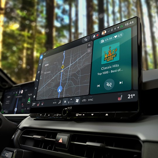 Saatavilla oleva tuulilasin heijastusnäyttö (HUD-näyttö) näyttää tärkeät tiedot suoraan tuulilasiin ajolinjasi eteen, jotta voit seurata nopeutta ja navigointiohjeita irrottamatta katsettasi tiestä.